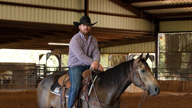 Miles Baker gives a 40-day check in with a colt by Show Me The Buckles, progressing from a side-pull to a snaffle bit and demonstrating what those early rides look like.