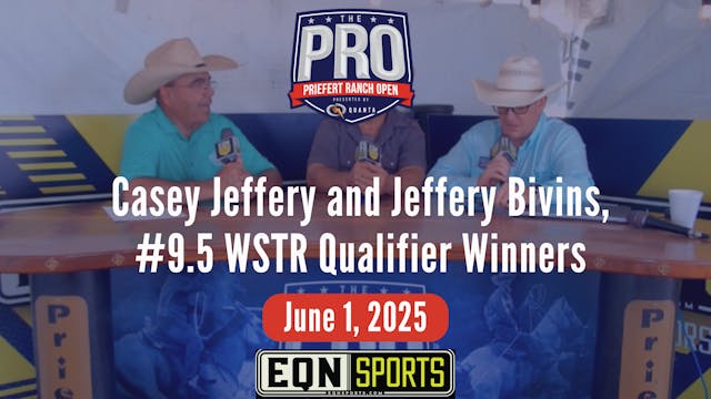 DruStew is joined by Casey Jeffery and Jeffery Bivins, the #9.5 WSTR Qualifier Winners, at the EQN Sports Desk, driven by Holiday Auto Group, at the Priefert Pro Ranch Open Roping on June 1, 2025.