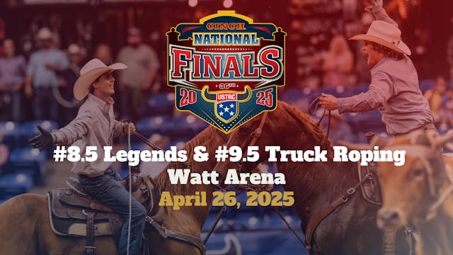 Watch the #8.5 Legends Over 50 and #9.5 Truck Roping from the Pavilion at the Cinch USTRC National Finals of Team Roping on April 26, 2025.
